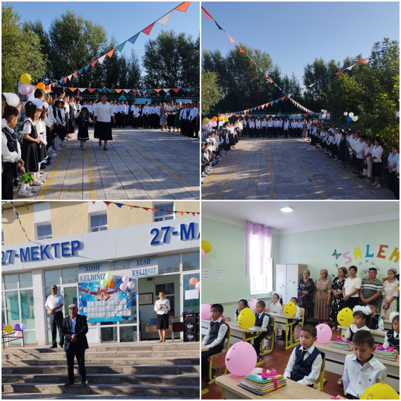 «Bilimler kúni» ✍️✍️ Qaraózek rayonı mektepke shekemgi hám mektep bilimlendiriw bólimine qaraslı 27-sanlı ulıwma orta bilim beriw mektebinde 2-sentyabr «Watan ushın, Millet ushın, Xalıq ushın» súreni astında bilimler kúni bayram keshesi bolıp ótti.Keshege jıynalǵanlar oqıwshı jaslardı qızǵin qutlıqlap 1-klass oqıwshılarına Prezident sawǵaları tapsırıldı.