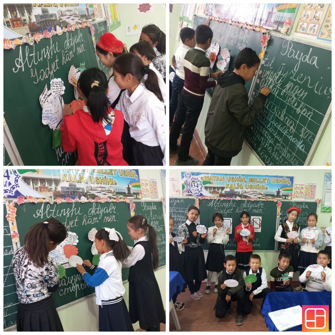 KELESHEK SAATÍ ✍️✍️ Qaraòzek rayonı Mektepke shekemgi hám mektep bilimlendiriw bólimine qaraslı 27-sanlı ulıwma orta bilim beriw mektebinde 6-oktyabr kùni 5-klasínda birinshi saat “Gadjetler hám men” temasında “Keleshek saat”ı ótkerildi.