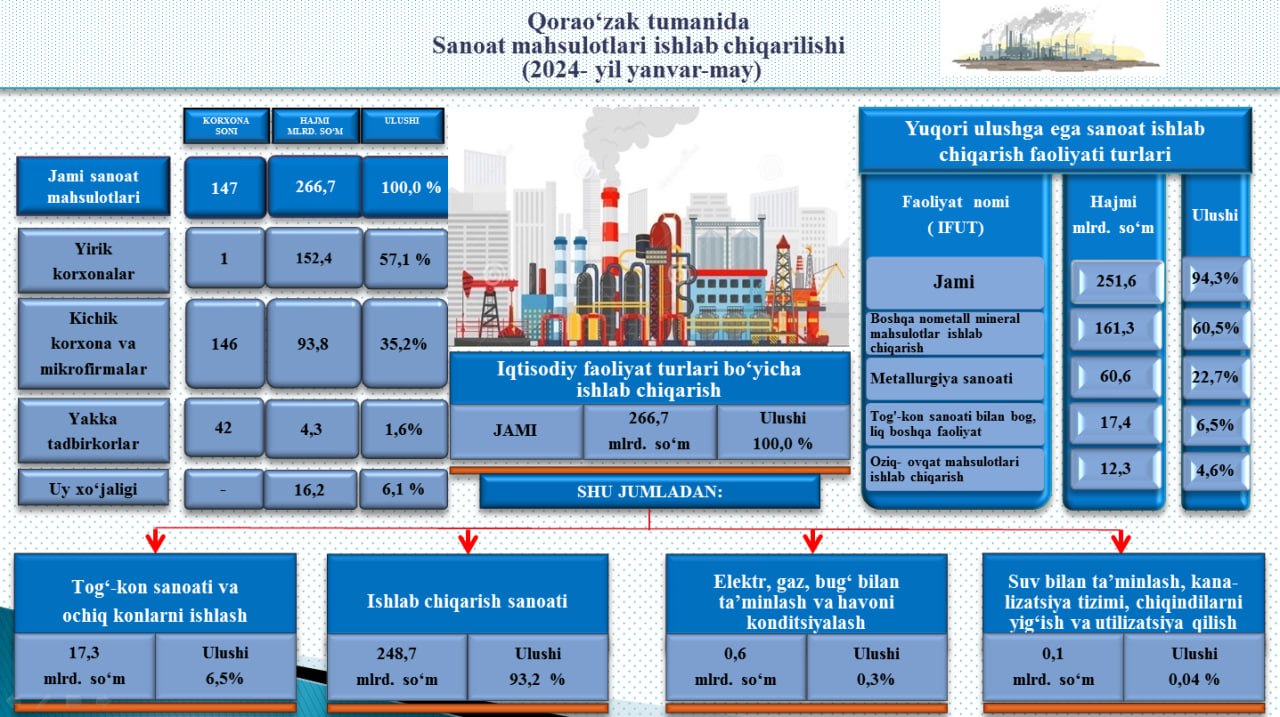Qaraózek rayonında 2024-jıl yanvar-may aylarında islep shıǵarılǵan sanaat ónimleri boyınsha maǵlıwmat
